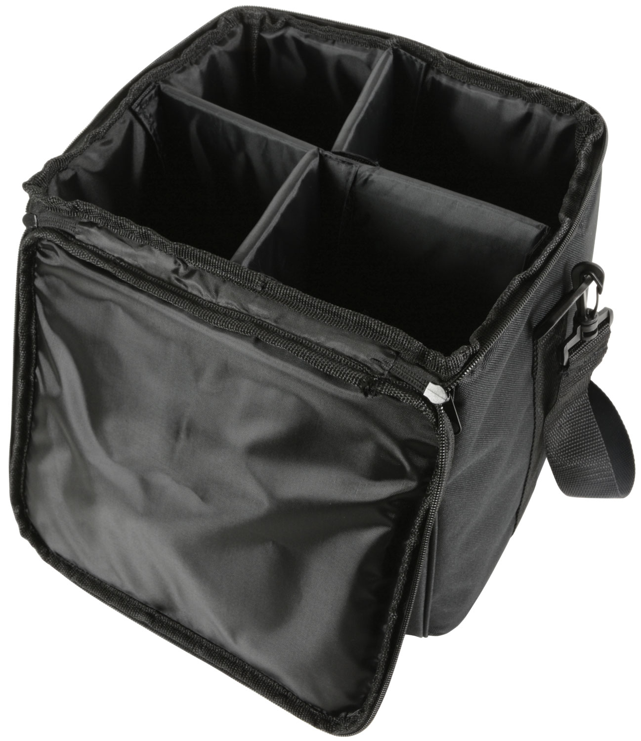 A padded transit bag with removable dividers for PAR Cans, leads and other associated accessories. Fitted with a strong carry handle and shoulder strap for ultimate portability.