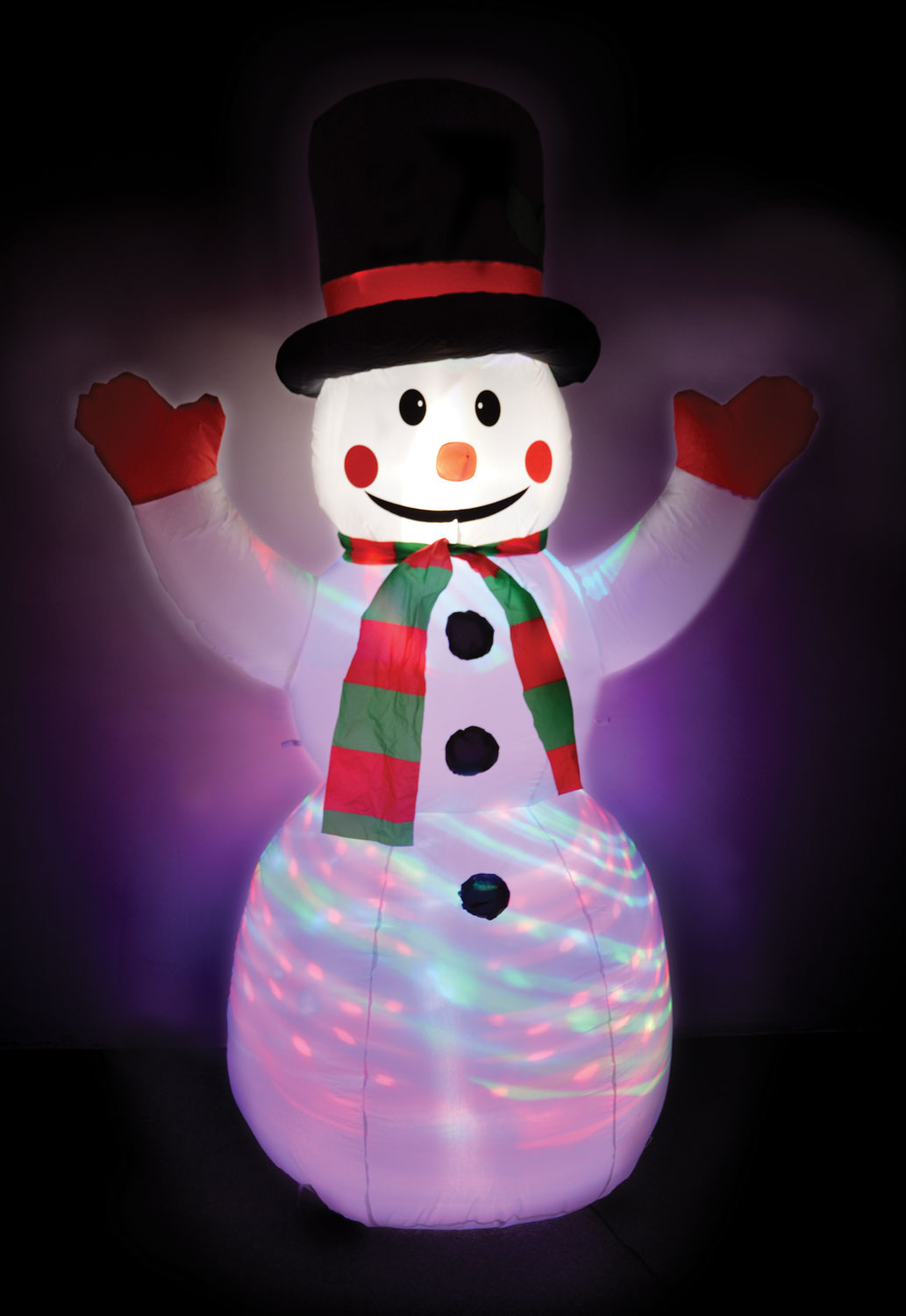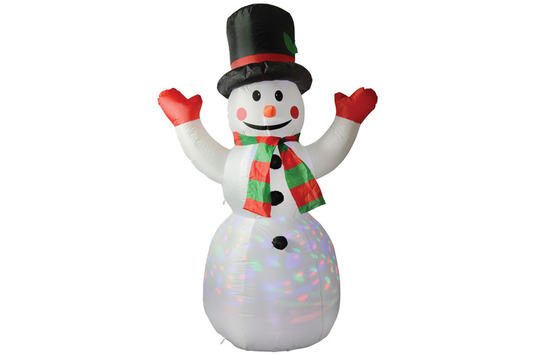 Decorative inflatable figures to bring the Christmas spirit to your home or garden! A range of 5 cheery designs, each with internal LED lighting for a festive glow or in the case of the snowman, a gently swirling light show. An internal, powered fan inflates each figure to up to 6ft in height, ensuring you can’t miss them – even from a distance! Ideal for indoor and outdoor use; just keep the 12Vdc adaptor sheltered from the elements. The weighted base keeps the figures upright and secure, and ground spikes are supplied for when extra fixing is required. Made from durable nylon, which folds away compactly for storage until next year!