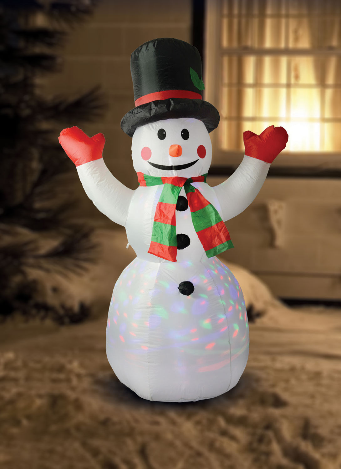 Decorative inflatable Christmas figures for the home or garden in 5 designs, up to 6ft in height. Internal lighting and fan for inflation, powered by 12Vdc adaptor. Weighted base with ground spikes.