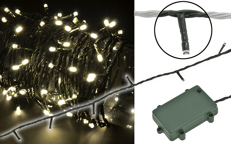 A range of battery powered LED string lights with 8 pre-programmed sequences, allowing you to adjust the mode to your preference via the included controller. Switching the lights on triggers an operating cycle with 6 hours on and 18 hours off allowing the lights to automatically come on at the same time everyday with no additional wiring. The high quality LEDs have a long lifespan and are energy efficient making them ideal for indoor and outdoor use.