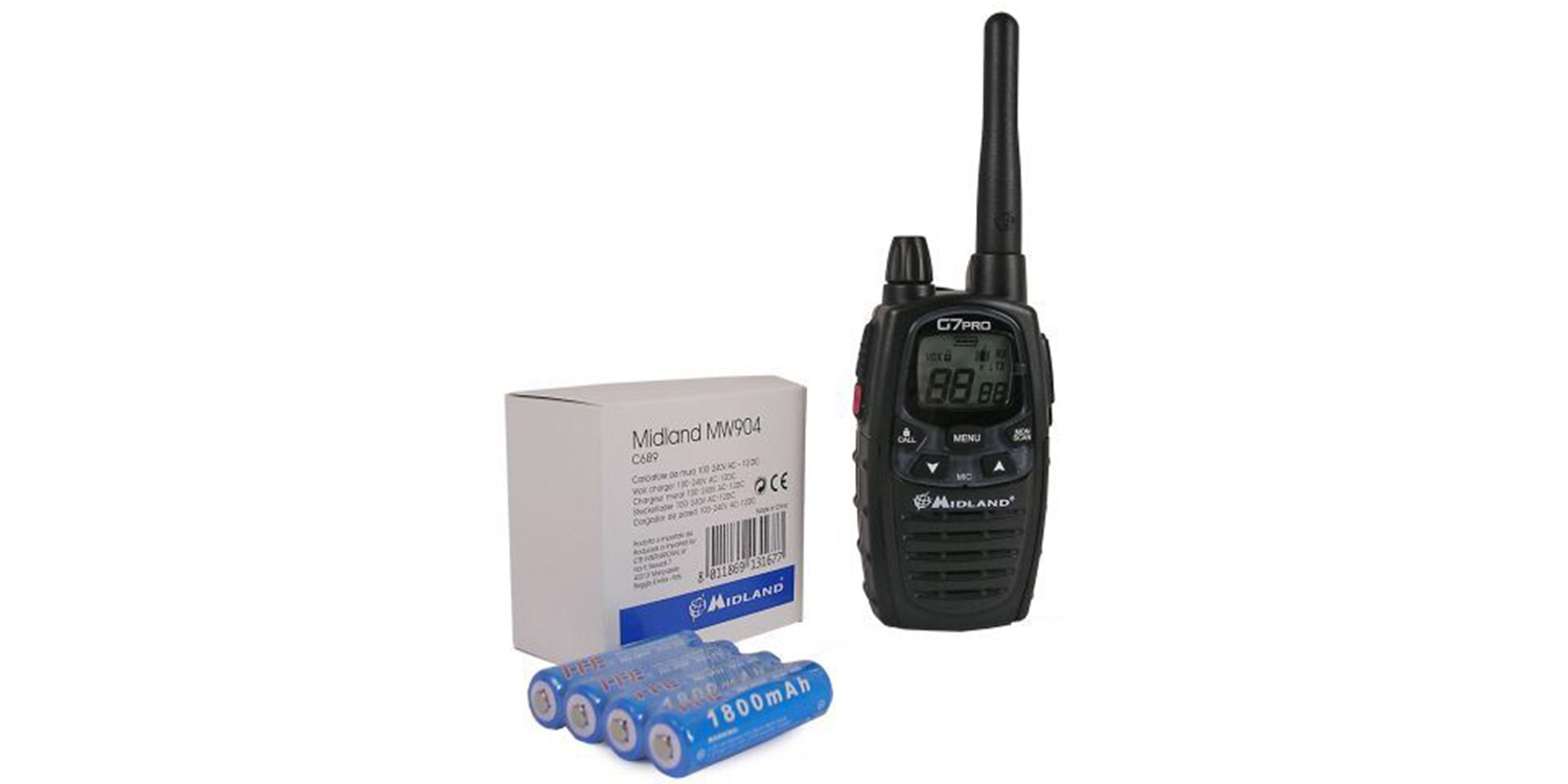 The very latest UK version of the Midland G7 licence free PMR446/LPD 2-way handheld radios. These are perfect to use anywhere, and you can easily add more radios to build up your own system for friends/family etc. Their splashproof design makes them ideal for both indoor and outdoor use. Simple to use and supplied complete and ready to use with a docking charger and re-chargeable batteries. This radio can be powered in 4 ways, from the supplied NiMh battery pack, from 4 x alkaline batteries, 4 x re-chargeable batteries or from the new (optional) 1200mAh Lithium-ion PB-Pro (C1148) battery pack that makes the radio 20% lighter. A dual function Press To Talk allows selection of either high power or low power, to save battery life.