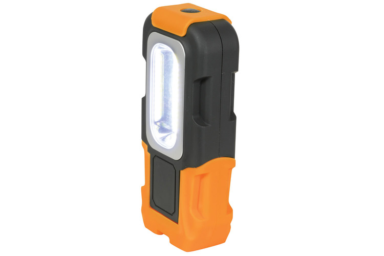 Tough ultra bright, COB-style mini LED work light that can be either hung with the foldable hook, stood up or attached to a magnetic surface. Its unique bi-fold bottom bracket with neodymium magnetised base makes it adaptable enough for most surfaces, providing bright light where you need it most.