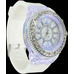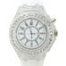 | Material | Faux leather strap, zinc alloy casing | Silicone strap and casing with rhinestone studded bezel |